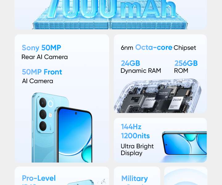 Display and Processor:- This Realme 15X 5G phone has 24 GB Ram and 256gb Rom.